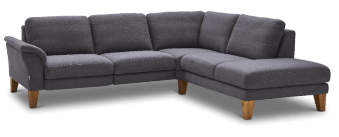 01 NATURA HOME Rockport A Polsterecke, Stoff Cape dark grey (100% Polyester), best. aus: 2,5-Sitzer mit Armlehne links, Eckelement und Einsitzer mit Abschlussteil rechts, Füße: Eiche geölt,