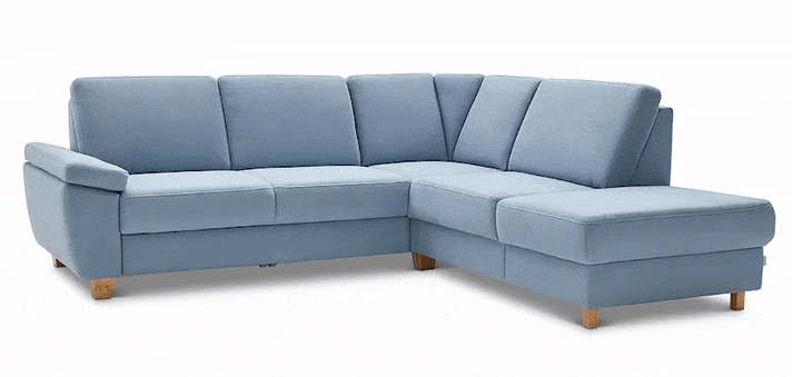 02 NATURA HOME Sommerville Polsterecke, Stoff Olympia clean hellblau (98% Polyester, 2% Polyamid) best. aus.: 2,5-Sitzer mit verstellbarer Armlehne links und Schlaffunktion, Eckteil Ottomane ohne Armlehne rechts, mit manuell verstellbaren Rücken und Stauraum, Füße: Eiche massiv bianco geölt, BHT ca. 242x88x215 cm, 2.599,-*