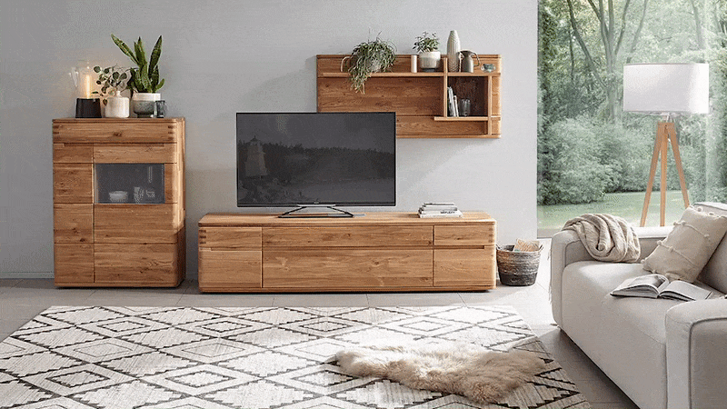 02 NATURA HOME Hartford TV Lowboard Front und Korpus: Eiche massiv, natur geölt, mit Hirnholzapplikation, BHT ca. 188×59×40 cm, 1.699,–*, ohne Deko